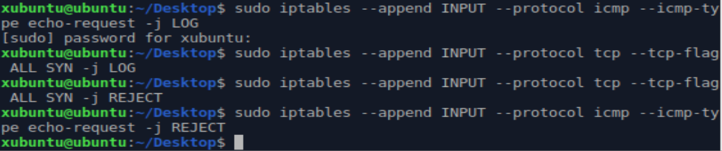 $ iptables --append INPUT --protocol tcp --tcp-flag ALL SYN -j LOG