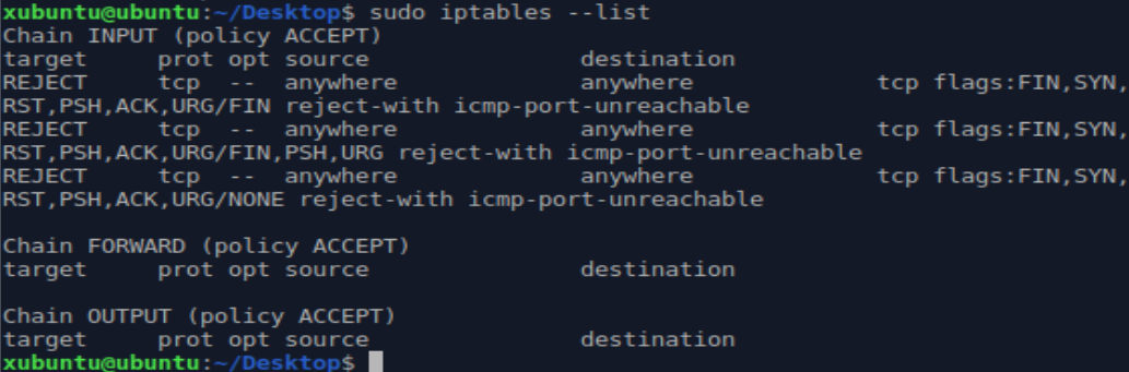 $ iptables --append INPUT --protocol tcp --tcp-flag ALL NONE -j REJECT