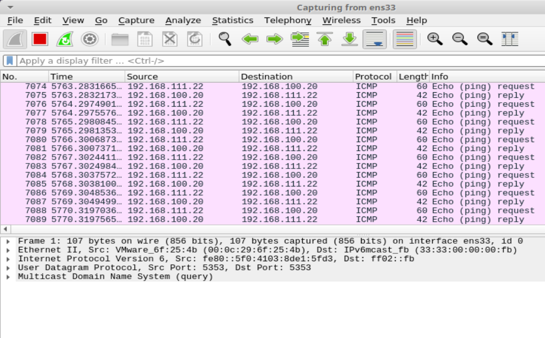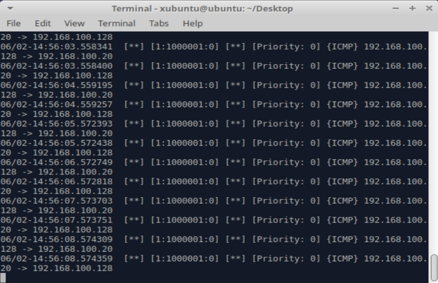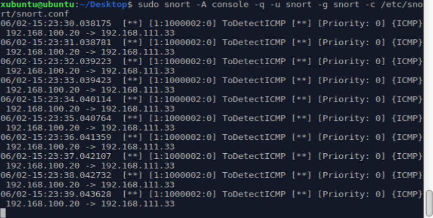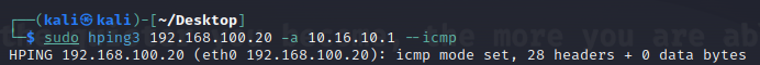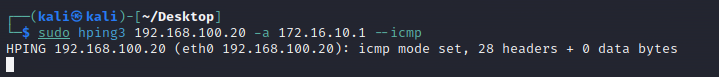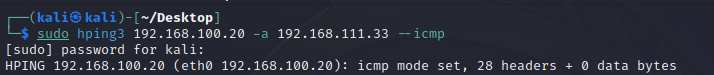 상황: ping에 대한 reply를 제 3자(111.33= 위조 ip)에게 보내고 있음. 응답이 돌아오지 않으니 kali에서 공격 후 반응이 없고, 룰에 따르면 128에서 오는 공격만 탐지하고 있으므로 snort에도 안뜸.