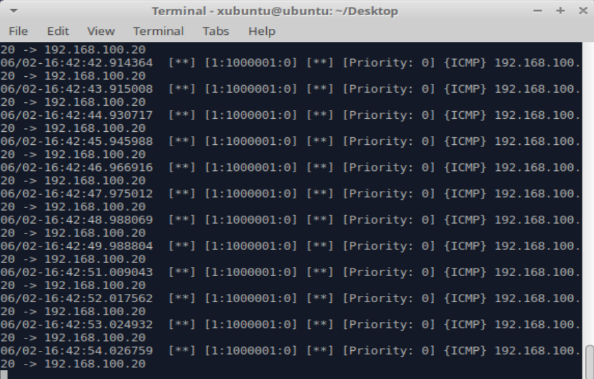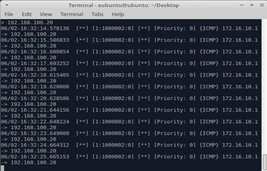 위와 같이 룰을 작성하고 만약 우분투와 같은 주소로 위조하여 공격할 시